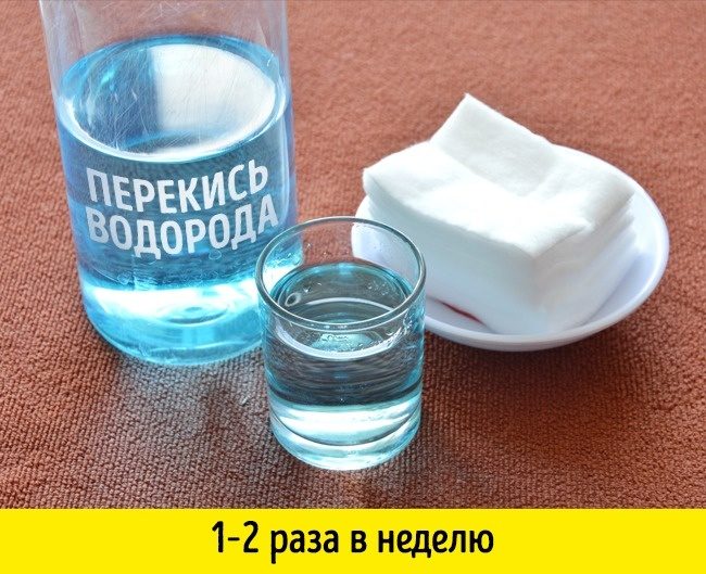 Прежде чем использовать перекись водорода для отбеливания, убедитесь, что ваши зубы не слишком чувствительные. Если все в порядке, то можно просто смочить ватный диск перекисью и аккуратно протереть зубы. Увлекаться таким способом не стоит, так как можно повредить эмаль.