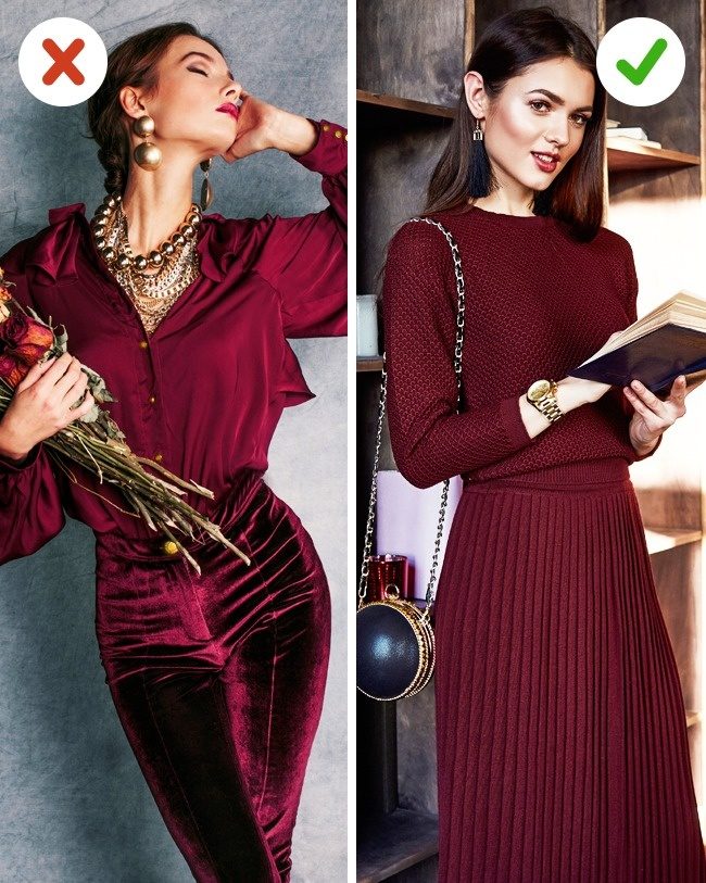 Особенно «кислотные». Они хороши для тематической вечеринки или дискотеки. Например, в стиле 90-х. Другой образ такие оттенки погубят.Что делать? Беспроигрышный вариант — одежда благородных цветов. Если не можете превозмочь любовь к яркому, начните хотя бы с ликвидации «кислоты» в гардеробе.
