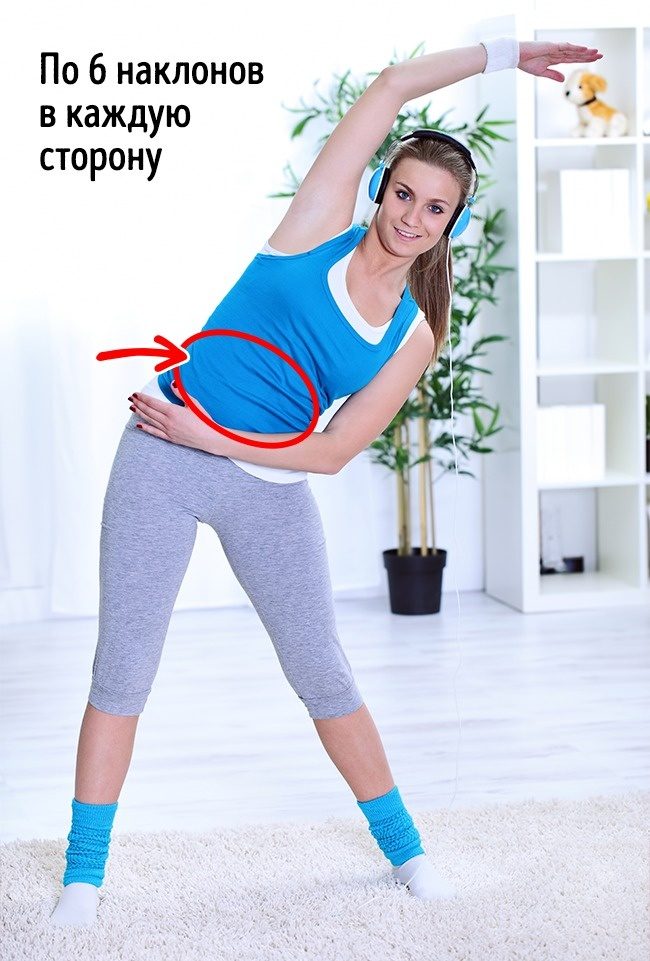 1. Ноги сомкните вместе, руки сожмите в кулак и раскачивайте туловище из стороны в сторону. Каждый раз, когда тело наклоняется вправо, левая рука, согнутая в локте, должна подтягиваться вверх.2. Теперь повторите все это: а) когда руки вытянуты по сторонам; б) когда руки вытянуты вверх, а пальцы переплетены между собой.