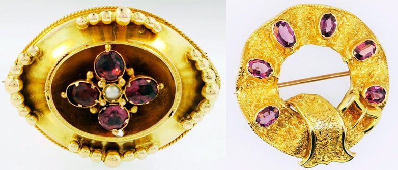 Популярными альмандины стали в Европе в эпоху романтизма. Среди ювелирных украшений часто встречались подвески, кольца, броши, крестики. Особенную любовь в то время приобрели подвески в виде соединенных сердец или в виде четырех листочков клевера. Очень любил работать с альмандинами знаменитый ювелир Карл Фаберже.