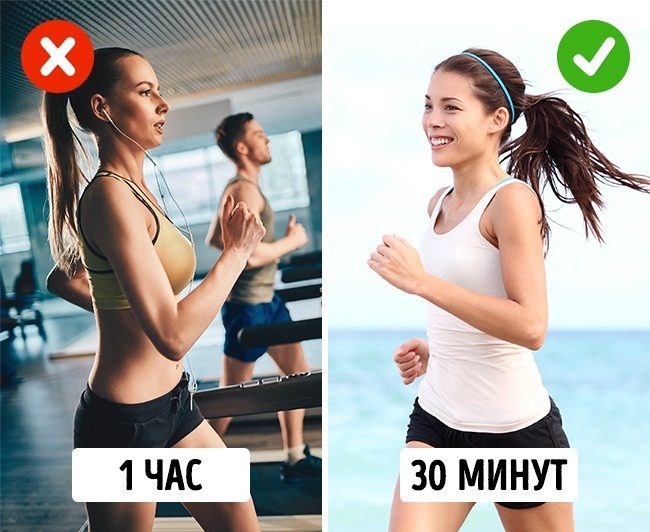 Регулярные занятия спортом не повод объедаться между тренировками. Чтобы ваш вес сохранился в норме или уменьшился до нужного, следует не только прибегать к физической нагрузке, но и правильно питаться, не перебарщивая с калориями, так как за час в спортзале в среднем сжигается не более 500 ккал.4. Тренировки на голодный или полный желудок