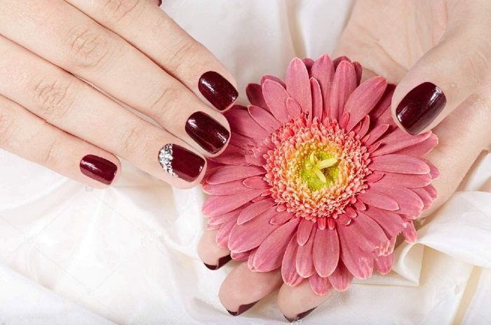 Маникюр цвета марсала