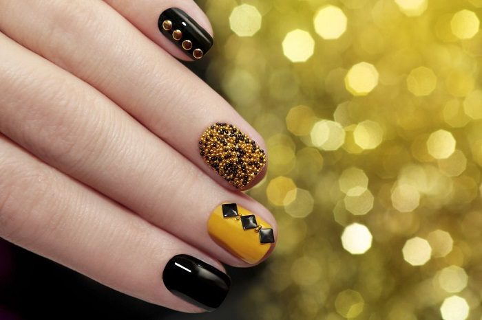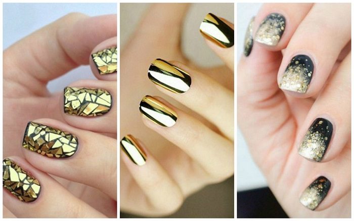 Черное с золотом – отличный вариант для осеннего маникюра