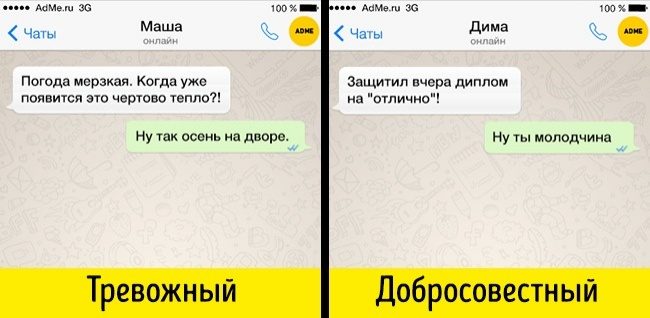 Тревожные и эмоционально неустойчивые люди обычно используют слова, связанные с отрицательными эмоциями. Экстраверты предпочитают слова, описывающие положительные эмоции. Добросовестные люди чаще употребляют слова из сферы достижений. А открытые люди обычно говорят длинными словами и фразами там, где можно подобрать более лаконичный синоним.