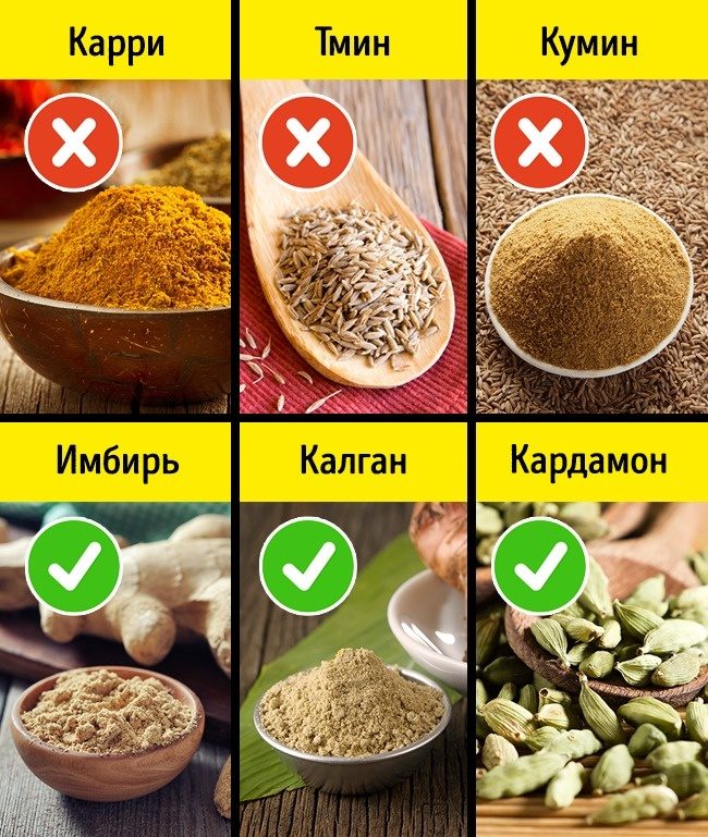 Если вы жить не можете без специй, попробуйте менее агрессивные продукты с приятным ароматом — кардамон, калган или имбирь.