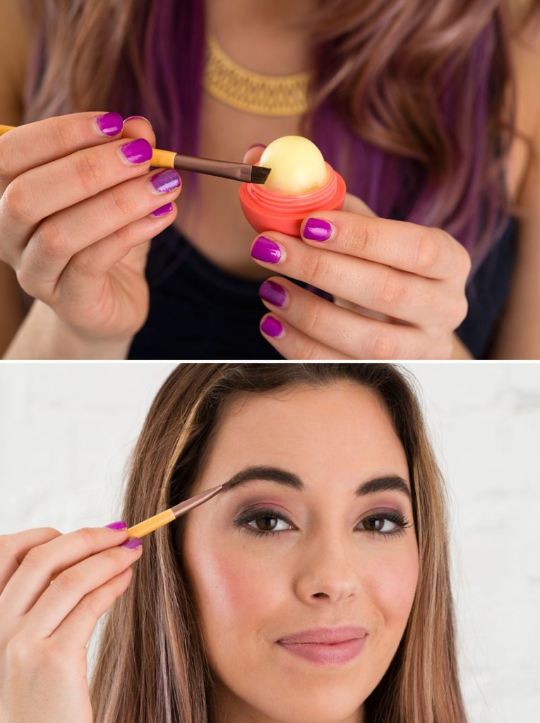 Если у вас есть бесцветный бальзам для губ, вы можете использовать его для непослушных волосков, которые портят форму ваших бровей. Вы можете нанести бальзам на брови чистой кисточкой или пальцем. Бальзам для губ содержит витамин Е, который может стимулировать рост ваших бровей.