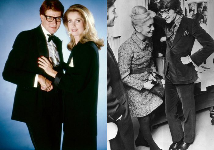 Катрин Денев всегда отличалась каким-то удивительным чувством собственного достоинства. Она точно знала, чего хочет от этой жизни и знала, как этого добиться. В 1965 году юная актриса для своего визита к английской королеве выбрала платье от Ив Сен Лорана, чем позабавила многих, но не самого дизайнера. Он увидел в ней ту женщину, которую отличает двойственность натуры и самого образа жизни. Днем она одна, а вечером – совершенно другая. Днем она прячет свою фигуру за складками платья, а вечером предстает во всем блеске своей чувственности.