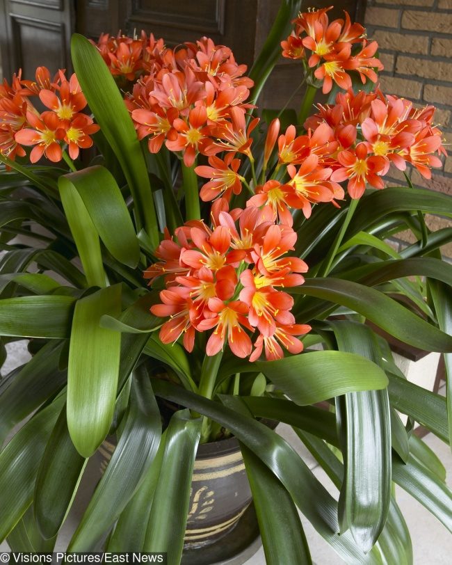 Кливия — это очень красивое комнатное растение с яркими цветами, сгруппированными в зонтик. Несмотря на всю свою привлекательность, кливия содержит сильный яд, который в больших дозах может вызвать паралич.
