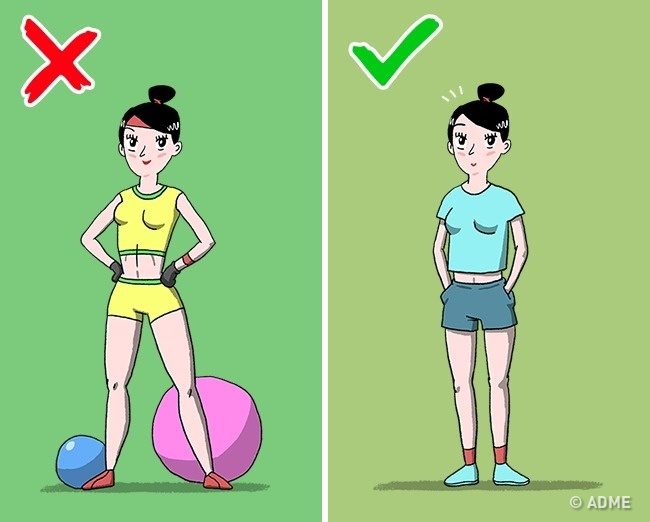 Не бойтесь стать «белой вороной». Не все сразу имеют идеальные формы. И тренирующиеся чаще всего смотрят в зеркало, чтобы контролировать правильность своих упражнений, а не высматривают новичков, чтобы посмеяться над ними.