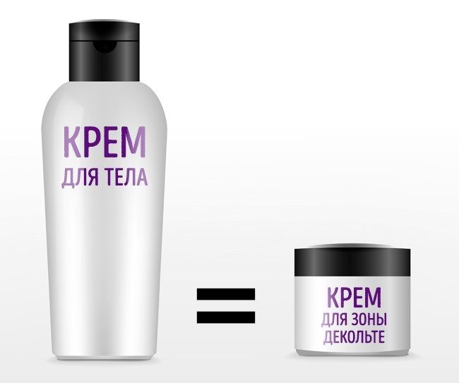«Разделяй и властвуй» — еще одно правило маркетологов. Чем больше кремов для разных частей тела выпускает бренд, тем больше денег дамы спустят на косметику. Кремы для зоны декольте — прекрасный тому пример, ведь они по составу ничем не отличаются от обычных кремов для тела. Что уж говорить, что «подтянуть» грудь смогут разве только что пластические хирурги, но никак не экстракт зеленого кофе в составе крема.