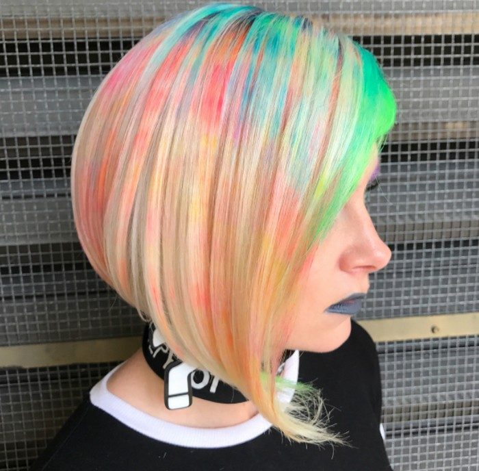 Чего только ни делали девушки с волосами за последние пару лет в угоду моде и жажде экспериментов: красили их в «бабушкин» серый, оттенок розового золота или даже полинявших джинсов. Но этот новый тренд куда смелее и ярче своих предшественников. А его истоки стоит искать даже не столько в сфере парикмахерского искусства, сколько в…маникюре. Помните, как еще недавно модницы, насмотревшись картинок в Pinterest, танцевали с бубном, водой, лаком и пенкой для бритья, чтобы добиться «мраморного» эффекта на ногтях? Вот теперь делают примерно то же самое, только с волосами.