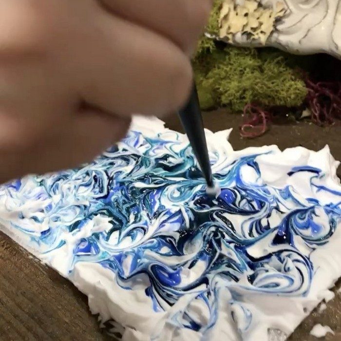 Эш смешивает несколько оттенков краски на…пене для бритья.
