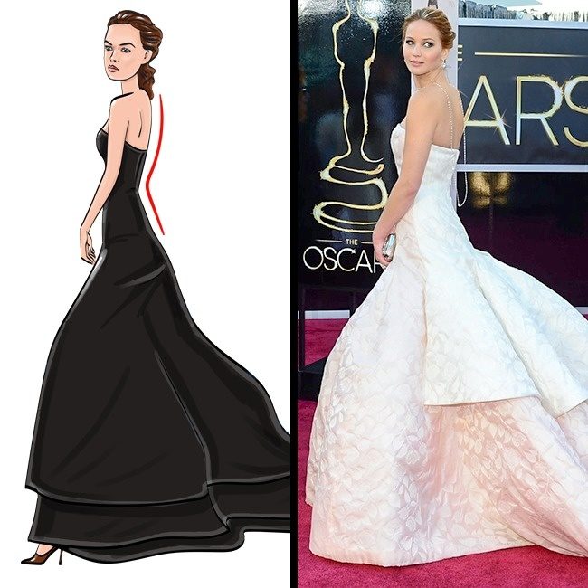 Взгляд через плечо — поза высочайшего уровня. Она была популярна еще в 20-х годах — тогда же, когда появились платья с открытой спиной. Отлично подчеркивает бедра и изгиб спины. Девушка в наряде с открытой спиной, принявшая такую позу, может буквально убить глазами.