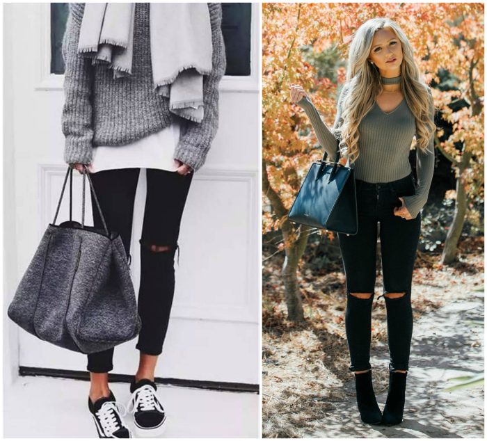Дерзкие и эффектные джинсы с дырками на коленях прекрасно подойдут молодым и активным девушкам и помогут создать модный повседневный образ.