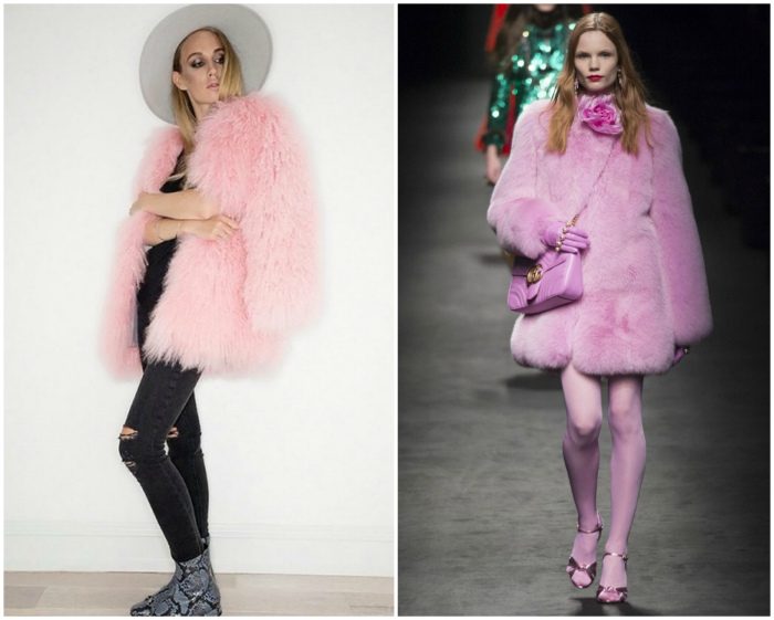 Шубы лилового и розового цвета.