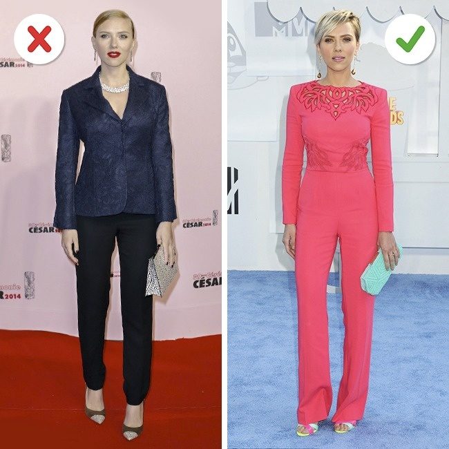 Даже самая красивая и изысканная одежда на разных людях может смотреться совершенно по-разному. Чтобы выглядеть великолепно, нужно знать и учитывать особенности своей фигуры при выборе одежды. Например, если туловище недлинное, тогда из жакетов и пиджаков стоит присмотреться к укороченным моделям, если ноги длинные — к брюкам с высокой посадкой.