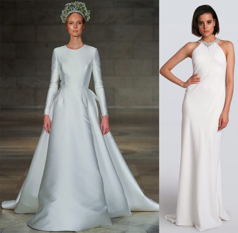 Свадебная мода больше склонна к роскоши, пышности и блеску, нежели к строгости, но это не значит, что нельзя найти строгое свадебное платье. В коллекциях многих дизайнеров регулярно встречаются свадебные платья строгого стиля.