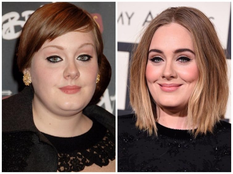Важная составляющая знаменитого кошачьего взгляда Меган Фокс — ее шикарные брови. Но так было не всегда: девушка активно выщипывала их в детском возрасте, поэтому в юности они были очень тонкими. Сейчас за бровями актрисы следит специалист, а в салонах красоты то и дело просят «брови как у Меган Фокс».Адель
