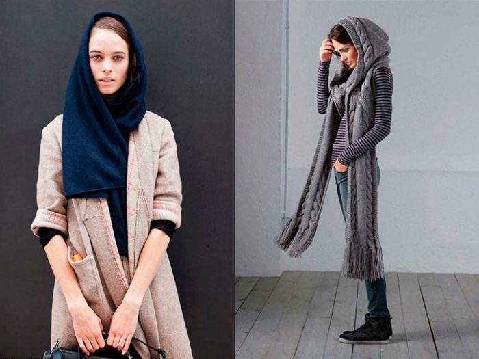 Шарф-капюшон — это уникальное изделие, которое согреет не только шею, но и голову. Оригинальные вязаные изделия такого типа гармоничней всего смотрятся в сочетании с повседневной одеждой, а также нарядами в спортивном стиле.