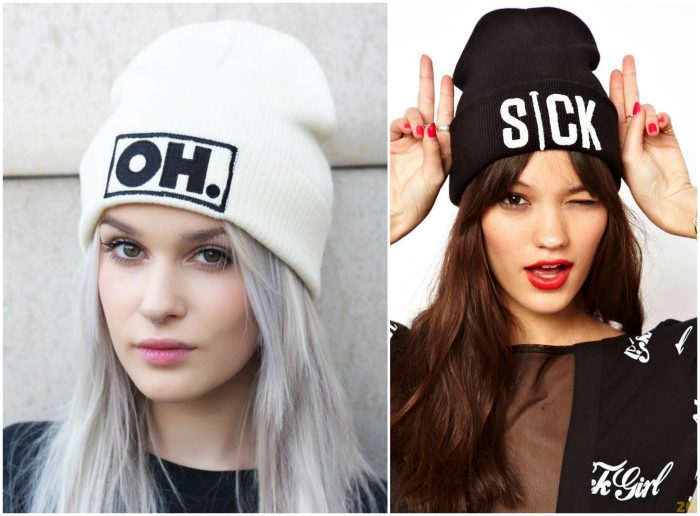 Шапка-бини с надписью.