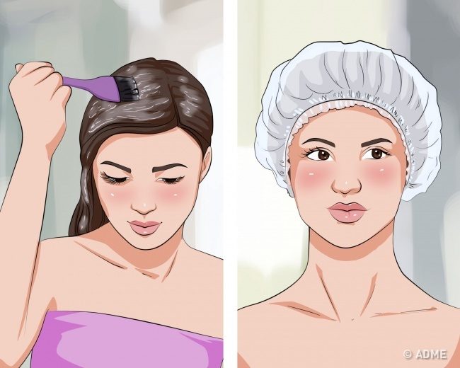 В одинаковой пропорции смешиваются оливковое, касторовое и репейное масла. Количество масла зависит от густоты и длины волос. Полученную смесь подогревают на водяной бане, распределяют по всей длине волос и держат минимум 40 минут, обернув волосы теплым колпаком.