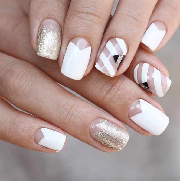 Если вы хотите разбавить скучный маникюр, тогда попросите своего нейл-мастера создать на ногтях минималистичный рисунок, элементы геометрии и орнаментов. Отдайте предпочтение графике и полоскам, ведь именно такой дизайн не оставит никого равнодушным.