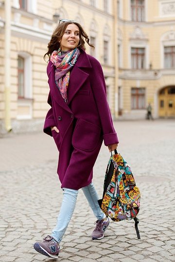Актуальная палитра в сезоне 2018 состоит из множества оттенков, но самые неожиданные и креативные оттенки — от насыщенного цвета спелой сливы, до светлого оттенка лиловой глицинии. Такие цвета отлично подходят для одежды из атласа и парчи. Можно выбрать сливовые брюки из парчи с набивным рисунком, или легкое платье из шифона нежного оттенка сирени. В таких цветах можно ходить на вечеринки и, конечно, выбрать пурпурный наряд для встречи Нового года. В зимний период будут актуальны кашемировые шарфы темного сливового цвета, а также головные уборы.