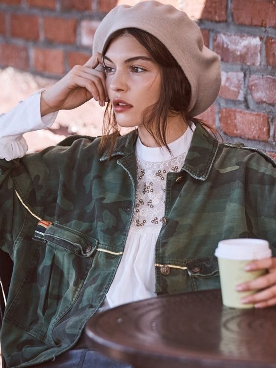 Этот акцент придает всему образу романтическую непринужденность, делая отсыл к 60-м, и если тогда его носили с пальто и высокими сапогами, то сегодня берет носится с чем угодно. Да, и с кедами и спортивными штанами тоже.