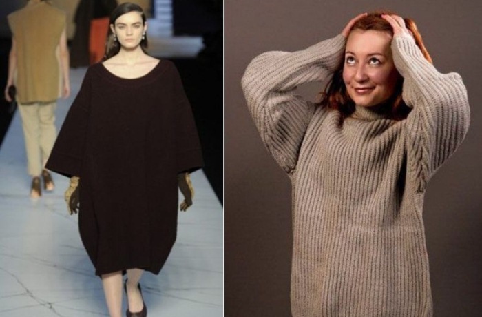 Бум моды оверсайз уже проходит, одежда вашего размера всегда будет выглядеть на вас лучше, чем та, что на 2-3 размера больше. Если расстаться с любимыми вещами оверсайз для вас совершенно невозможно, то хотя бы придерживайтесь правила: весь образ должен строиться только на одной большой вещи. Например, к широкому свитеру следует подобрать джинсы-дудочки или узкие брюки, а к объемному кардигану – платье по фигуре.