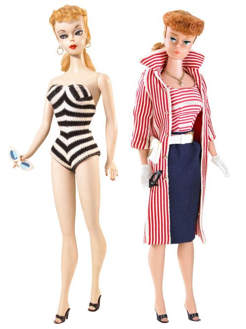Сразу огорошим: у Барби есть полное имя. Ее зовут Барби Миллисент Робертс. Впервые появилась на рынке в 1959 году и позиционировалась в качестве «модели-тинейджера». Барби изображала икону старого Голливуда, вроде Мэрилин Монро, Одри Хепберн или Элизабет Тейлор. Она стоила $3, а ее одежда — от $1 до $5. В первый же год было продано 300 тысяч кукол. Ее прическа и макияж соответствовали образу и моде тех времен: завитые волосы, подведенные голубым карандашом глаза, томно опущенные, как если бы это был кадр в фильме, и карминные губы. На работу она носит элегантные твидовые костюмчики, живет в «Доме мечты».