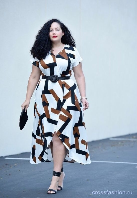 Третий вариант – увести внимание наверх. Облегающий силуэт с акцентом на груди или плечах поможет сделать полноту бедер совершенно незаметной.