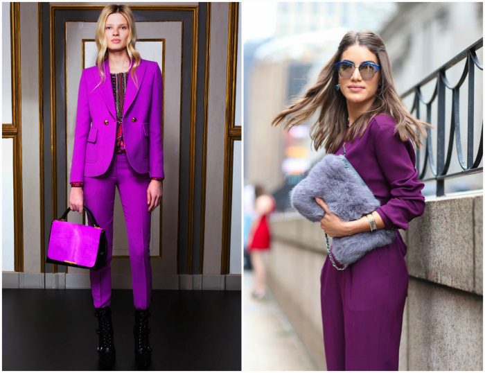 Самым модным оттенком 2018 года был провозглашен яркий и насыщенный ультрафиолет. Этот провокационный, современный и эксцентричный оттенок поможет привлечь внимание к своей персоне. Платья, костюмы, жакеты и комбинезоны этого смелого оттенка станут настоящим гвоздем гардероба.