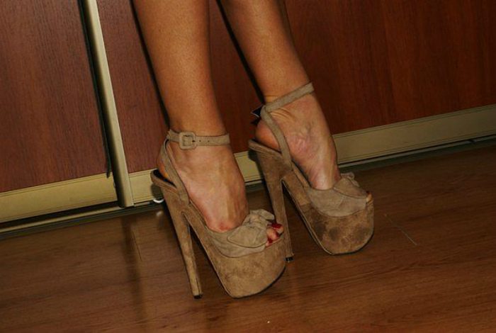 Обувь на экстремально высоком каблуке да еще и в сочетании с платформой, в глазах мужчин выглядит, как обувь для стриптиза. Кроме того, подобные туфли уродуют женские стопы, превращая их в копыта животного. Поэтому, если хотите ловить на себе восхищенные взгляды мужчин, выбирайте обувь попроще и поизящней.