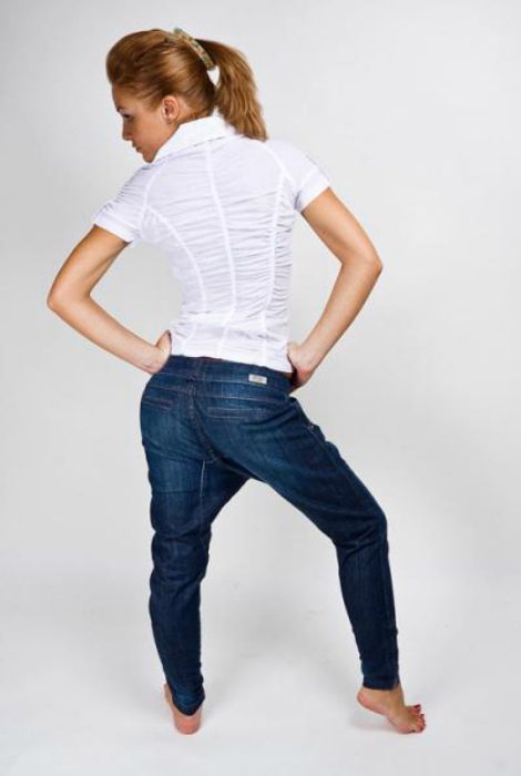 Большинство мужчин в один голос заявили, что девушки, облаченные в джинсовые комбинезоны, ассоциируются у них с Карлсоном, немецким сантехником или фермером. Надевать это безликий и немного забавный предмет одежды можно во время садовых работ или в период беременности.