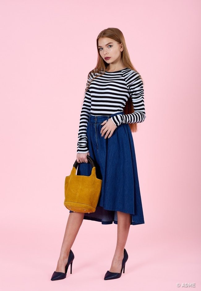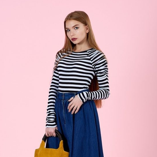Если взять полосатый верх и добавить длинную узкую юбку приглушенных оттенков, то получим очень женственный силуэт, стройные ноги, красивую осанку и восхищенные взгляды окружающих.