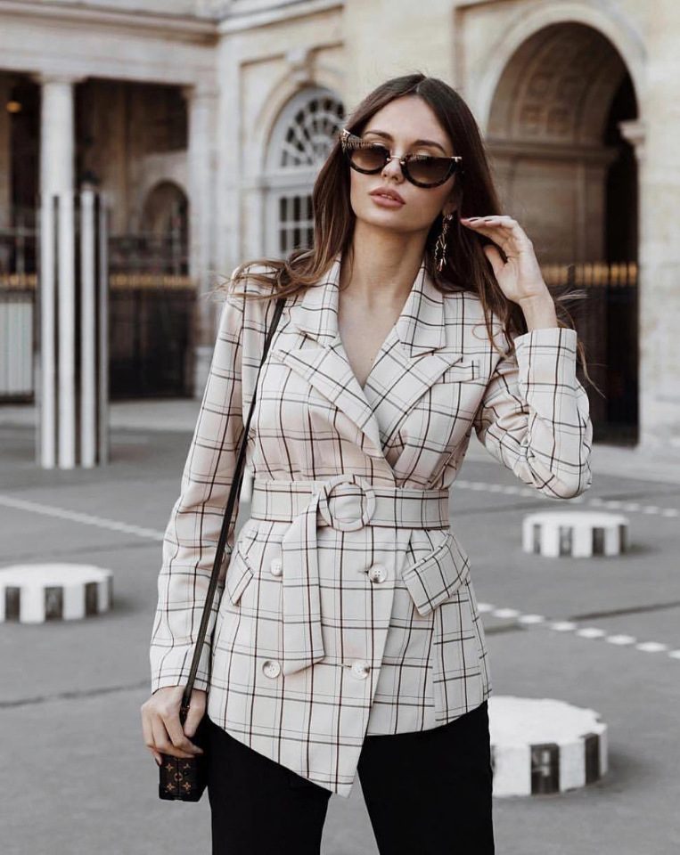 Клетчатый тотал-лук — это невероятно элегантно. Тем более костюмы-двойки вновь на пике популярности. В общем, надевайте костюм в клетку и будьте уверены: ваша элегантность не останется незамеченной