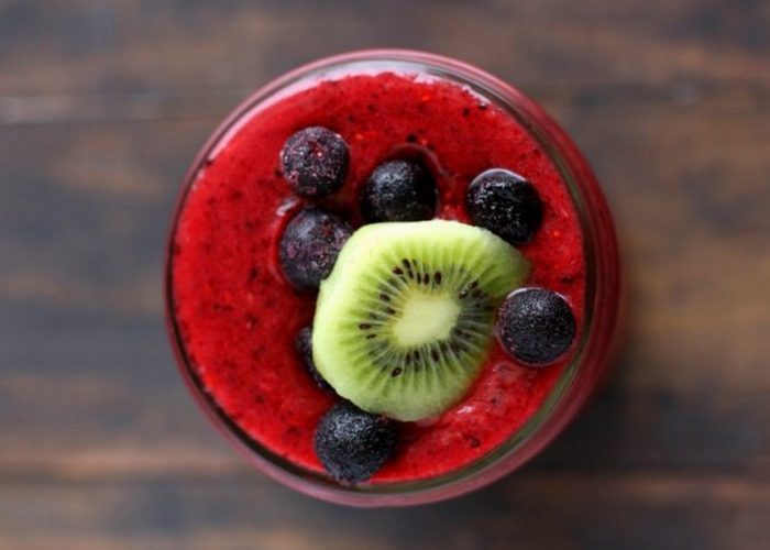 Фруктовый смузи является одним из самых быстрых способов получить порцию здоровых ингредиентов за один прием пищи: этот свежий коктейль, полный витамина С, антиоксидантов и биофлавоноидов, даст отличный иммунитет. Витамин С является одним самых важных витаминов, «запас» которого в организме нужно постоянно пополнять. Мало кто знает, что в одном киви есть более 100% рекомендуемой суточной дозы витамина С. Кроме того, этот ягодный коктейль очень вкусный.