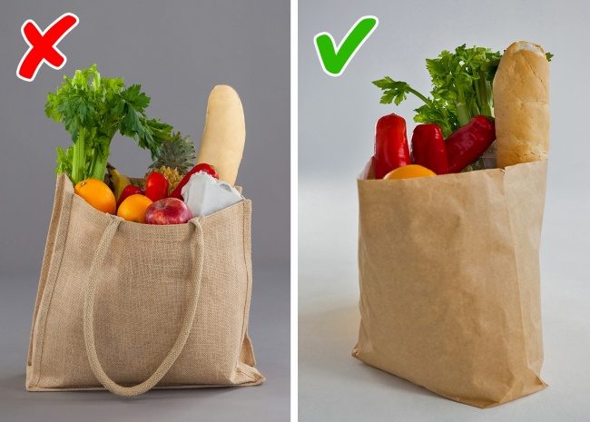 Использованный больше 1 раза пакет для продуктов — в 99,9 % случаев несет на себе массу бактерий. Если вы принесли в пакете сырое мясо, даже упакованное, велика вероятность того, что бактерии попадут в другую еду, особенно в овощи и фрукты. Выход — использовать одноразовый пакет или хозяйственную сумку, которую необходимо каждый раз стирать.
