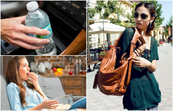 В жаркие дни все водители возят с собой бутылку с водой, чтобы утолять жажду в пути. Но ни в коем случае не оставляйте воду в салоне автомобиля надолго. В жаркие дни вода действует, как линза для солнца, а если она находится на темной поверхности, то притягивает еще больше солнечных лучей. Все эти факторы могут привести к возгоранию.