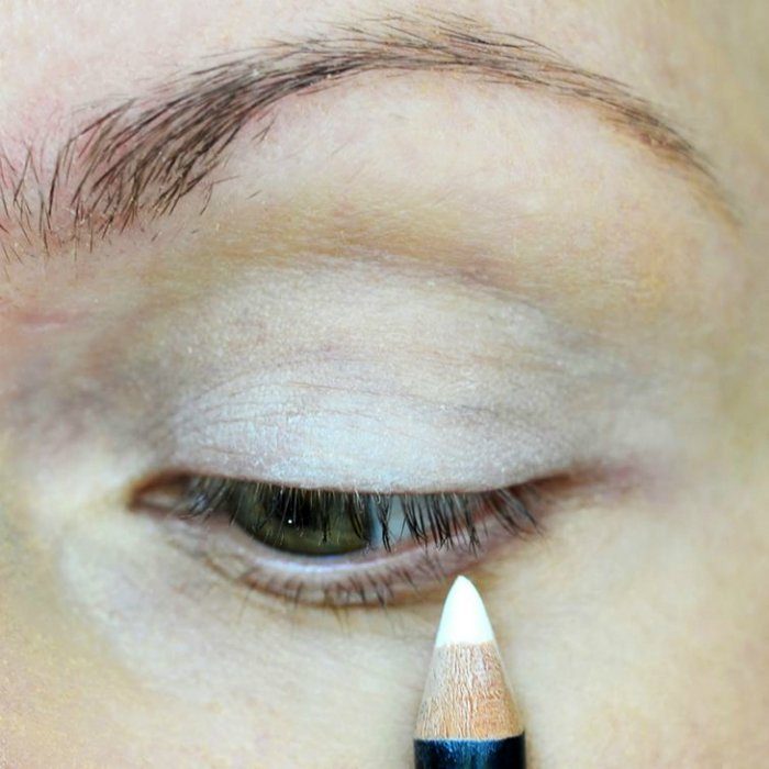 Белый карандаш, нанесенный на внутренние уголки глаз, придает сияние взгляду, а также меняет форму глаз, подчеркивая их миндалевидность.