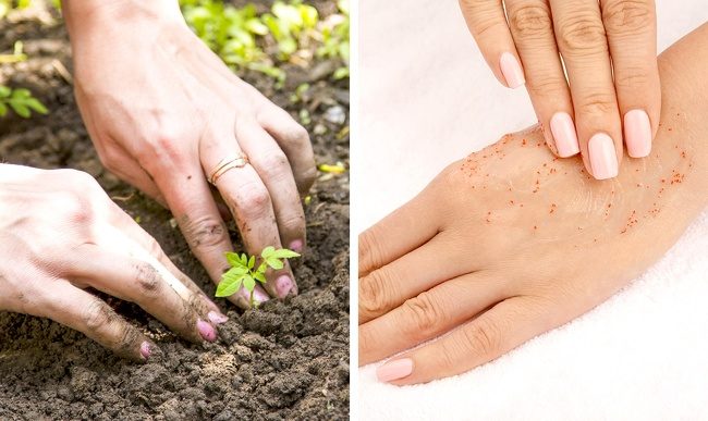 Чтобы отмыть въевшуюся после работ в саду землю, нужно воспользоваться скрабом.