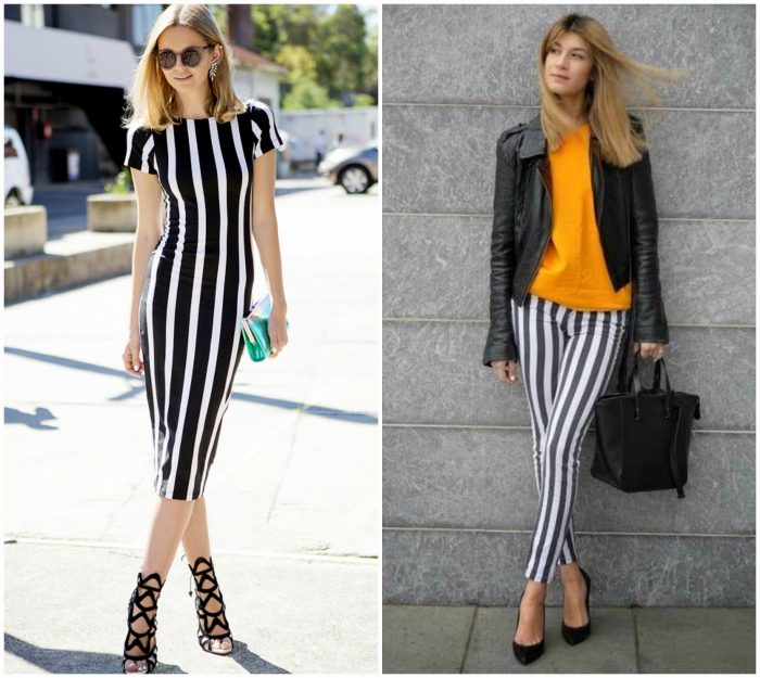 Не стоит недооценивать роль принтов. Грамотно подобранный принт поможет подчеркнуть достоинства фигуры, в то время, как неудачный узор наоборот выставит напоказ все недостатки. Стройным девушкам невысокого роста стоит обратить внимание на одежду с вертикальными полосками. Такой принт поможет визуально вытянуть силуэт. Хотите, чтобы ноги выглядели длиннее и стройнее, носите брюки с вертикальными полосками.