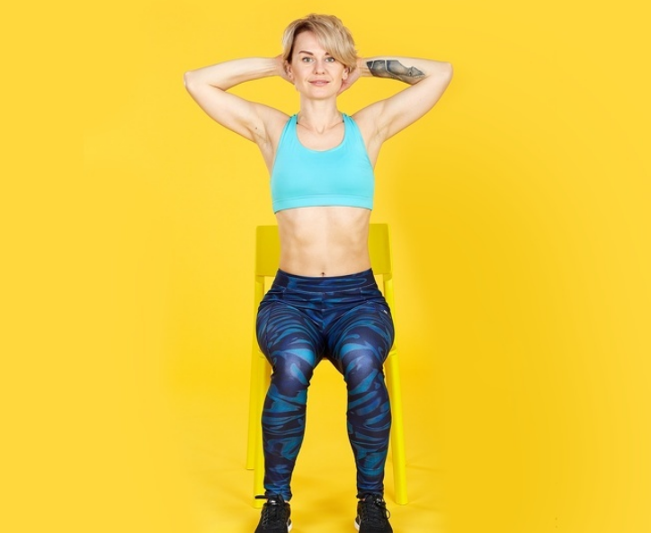 Исходное положение: сидя на крае стула, спина выпрямлена. Ноги на ширине плеч, ступни полностью стоят на полу.