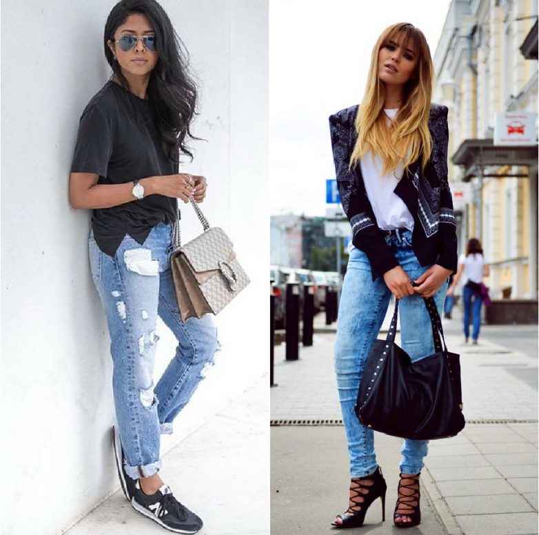 С красивыми туфлями и на высоком каблуке носить джинсы варенки драные?