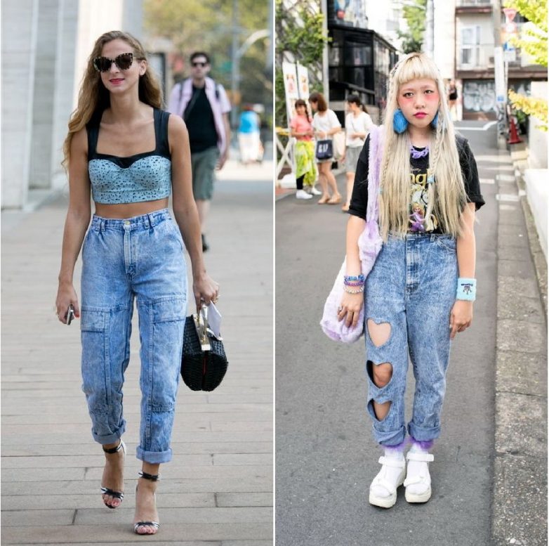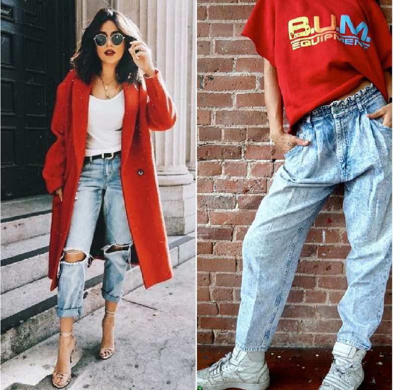 Отличной новостью является то, что дизайнеры не просто вернули привычные всем джинсы-варенки из 80-х годов. Они предлагают различные фасоны и оттенки тканей. Теперь джинсы выполняются не только в голубом, но и в коричневом, сером, желтом, кирпичном, черном, малахитовом цвете. В 2018 с такими джинсами предлагают носить:облегающие гольфы;