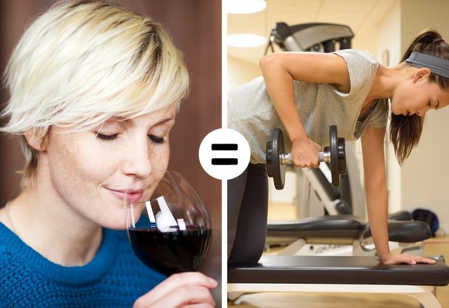 Ученые из Альбертского университета заявляют, что бокал красного сухого вина способен заменить целый час тренировки в спортзале. Дело в том, что содержащиеся в напитке вещества ускоряют работу сердца и производительность мышц, а ресвератрол помогает преобразовать белый жир в бурый. Помните главное: речь идет всего об одном бокале.