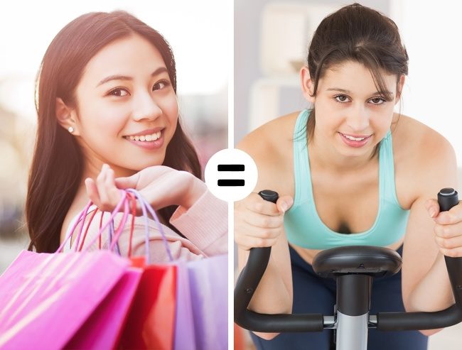 Шопинг выматывает организм куда больше, чем кажется. Во-первых, подобная прогулка, как правило, дело не одного и не двух часов, во-вторых, сумки с покупками превращают простое хождение в тренировку с отяжелением. Шопинг в течение трех часов приблизительно эквивалентен часу занятий на велотренажере, цена которых — 500 калорий.