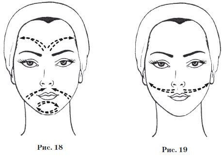4. 2 минуты производим мелкие щипки по линиям мимических морщин (рис. 17, 18).