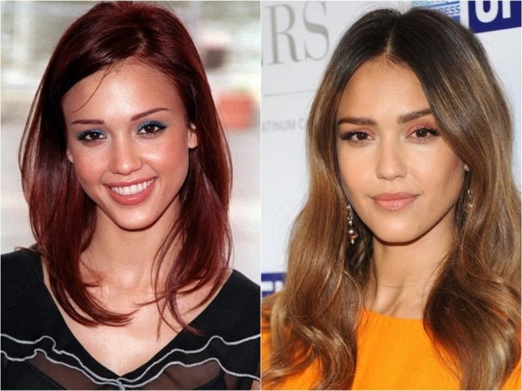 Темные брови-«ниточки» смотрелись на Лере Кудрявцевой слегка несуразно, делая ее глаза визуально меньше, а остальные черты лица — больше. Но Лера успешно выполнила работу над ошибками: сейчас у нее широкие темно-коричневые брови с красивым изгибом.Джессика Альба
