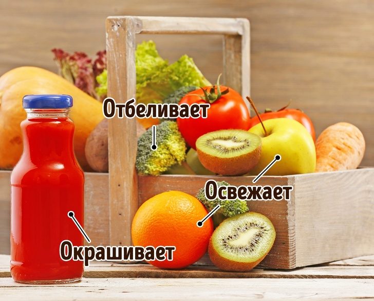 Соки. Яркие фруктовые и овощные соки действуют так сильно, потому что содержат кислоту, которая ослабляет зубы и позволяет легче проникать красящим веществам. Если мы едим ягоды или овощи, слюна выделяется сильнее и смывает красящие вещества, в случае с соками так не происходит.